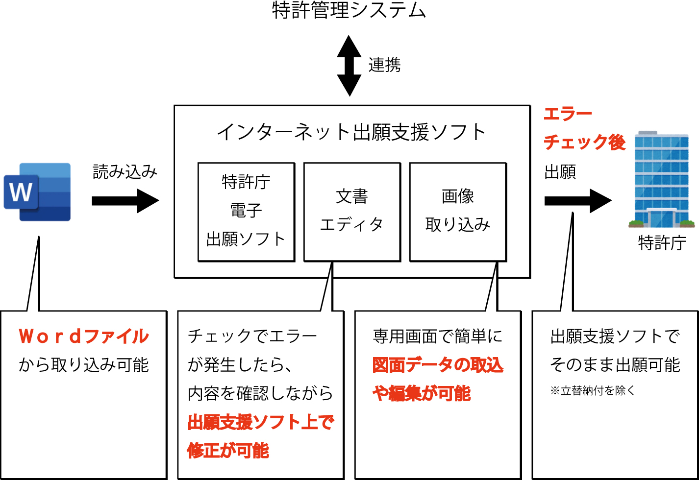 ・特許管理システムへ直接取込できます。